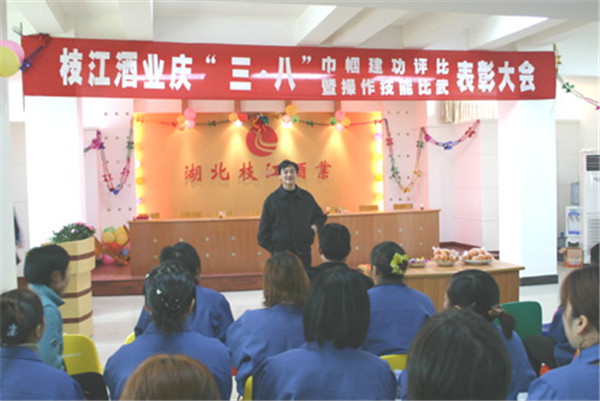 3月7日,枝江酒業(yè)公司組織了慶“三八”巾幗建功表彰大會(huì )、操作比武大賽和職工趣味活動(dòng)。本次活動(dòng)由公司工青婦委共同組織,邀請公司董事會(huì )領(lǐng)導參加,對“三八”紅旗手和先進(jìn)勞動(dòng)模范進(jìn)行了表彰?!?/a>